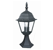 Улично-садовый светильник, черный, используется для освещения садовых аллей и дорожек. Корпус выполнен из алюминиевого сплава, который стоек к коррозии, и покрыт термостойкой краской. Светильник имеет погодозащитную конструкцию и может использоваться в широком диапазоне температур. Такой фонарь прост в установке и эксплуатации. Его можно эксплуатировать с лампами накаливания, энергосберегающими и светодиодными лампами.