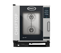 Пароконвектомат UNOX XEVC-0711-EPRM серии CHEFTOP MIND.Maps™ PLUS предназначен для приготовления различных блюд, выпечки хлебобулочных и кондитерских изделий на предприятиях общественного питания и торговли, в пекарнях и кондитерских. Модель оснащена встроенной в дверь светодиодной LED-подсветкой и C-образными с зубчатыми нишами направляющими. Внутреннее открывающееся стекло облегчает чистку и обеспечивает максимальную гигиену. Камера с закругленными углами выполнена из нержавеющей стали AISI 304, направляющие - из профилированной стали, дверной замок - из высокопрочного самосмазывающегося технополимера, внутренний штифт дверной ручки - из углеродного волокна.