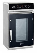 Скругленные внутренние углы камеры и вентилятор, равномерно распределяют тепло. Оснащён аварийным термо-выключателем, для обеспечения безопасности. Рабочая камера оснащена лампой подсветки и концевым микро выключателем, отключающим вентилятор при открытой дверке. Все детали изготавливаются из высококачественной нерж. Стали марки AISI 304.Вентилируемая дверь духовки и двухходовой механизм открывания предотвращает опасность получения ожогов. Номинальная потребляемая мощность: не более 3,2 кВт Номинальное напряжение: 220 В Номинальный ток:50 Гц Мощность двигателя вентилятора: не более 0,045 кВт Максимальная температура шкафа: 270 °С Количество воздушных ТЭНов:2 шт. Количество ТЭНов парогенератора:1 шт. Тип гастроемкости / противня:1/3 Количество гастроемкостей: 6 шт. Масса:46 кг