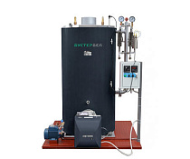 Простая и очень надежная конструкция с понятным управлением. Все детали и элементы котла выполнены из котельных труб марки стали 09Г2С российского производства. Поставляются полностью собранными на раме, комплектуются итальянскими горелочными устройствами «F.B.R», питательными насосами «Pedrollo» и немецкими предохранительными клапанами «Goetze».