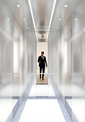 Модель лифта TLZ-E2 отличается элегантным и современным дизайном. Прозрачные стеклянные панели создают ощущение простора, а мягкое освещение делает интерьер комфортным. Пол с подсветкой и минималистичный стиль подчёркивают премиальный внешний вид лифта.