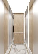 Лифт модели TLZ-E12 от Toshkent Lift Zavodi сочетает в себе современный стиль и комфорт. Его интерьер оформлен в теплых древесных тонах, создавая уютную атмосферу.