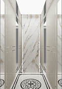 Лифт TLZ-EP2 — это воплощение безупречной эстетики. Интерьер, оформленный в светлых мраморных оттенках с зеркальными вставками, создаёт ощущение простора и свежести. Элегантный рисунок на полу подчёркивает премиальный статус лифта.