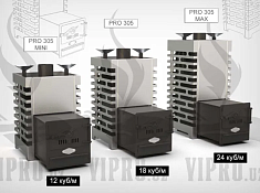 PRO 305 MINI) работает на дровах и газе. Обогревает до 12кубов.