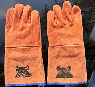 Выдерживает кратковременные высокие температуры: от +100°C до +250°C. Хорошая устойчивость к искрам и золе. толстый кожаный материал медленно проводит тепло.