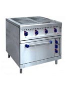 Плита электрическая 4-х конфорочная ЭПК-48ЖШ-К-2/1 духов.GN 2/1, конвекция, пароувлажнение, (Предназначена для приготовления первых, вторых, третьих блюд в наплитной посуде, а также для жарки полуфабрикатов из мяса, рыбы, овощей и выпечки мелкоштучных кулинарных изделий. Чугунные конфорки в качестве нагревательных элементов оснащены тремя ТЭНами. Площадь конфорок - 0,36 кв. м. Внизу - жарочный шкаф с двумя противнями размером GN 2/1 530х650х30 мм., изготовленные из нерж. металла. Духовка имеет раздельную регулировку мощности верхнего и нижнего блоков ТЭНов. Рабочий диапазон температуры духовки 65-270 С, установленный аварийный терморегулятор предохраняет шкаф от перегрева свыше 300 С. Обладает возможностью принудительной конвекции и пароувлажнения. Потреб. мощн. – 17,6 кВт, макс. темпер. конфорок – 4600С, время разогрева шкафа до максимальной темпер.-20 мин., внутр. размеры шкафа – 575х715х350 мм, габаритные размеры- 840x933x860 мм, вес - 180 кг,вся нерж.)