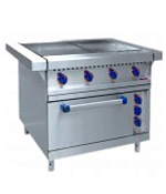 Плита электрическая 4-х конфорочная с жарочным шкафом типа ЭП-4ЖШ-Э эмалиров. духовка (Предназначена для приготовления первых, вторых, третьих блюд в наплитной посуде, а также для жарки полуфабрикатов из мяса, рыбы, овощей и выпечки мелкоштучных кулинарных изделий. Чугунные конфорки в качестве нагревательных элементов оснащены двумя ТЭНами, что обеспечивает быстрый и равномерный нагрев, а также гарантирует долгий срок эксплуатации конфорок. Площадь конфорок - 0,48 кв.м. Конфорки образуют ровную поверхность, что обеспечивает удобное и легкое перемещение наплитной посуды. Внизу - жарочный шкаф с тремя противнями размером 530х475х30 мм., изготовленные из черного металла. Духовка имеет раздельную регулировку мощности верхнего и нижнего блоков ТЭНов. Рабочий диапазон температуры духовки 65-270 С, установленный аварийный терморегулятор предохраняет шкаф от перегрева свыше 300 С. Плита имеет регулируемые по высоте ножки. Потреб. мощн. – 16,6 кВт, макс. темпер. конфорок – 4600С, время разогрева шкафа до максимальной темпер.-30 мин., внутр. размеры шкафа – 575х535х350 мм, габаритные размеры- 1050x897x860 мм, вес - 155 кг, лицев. нерж.)