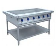 Плита электрическая 6-ти конфорочная ЭП-6П без духовки, на крашн. подставке (предназначена для приготовления первых, вторых и третьих блюд в наплитной посуде. Чугунные конфорки в качестве нагревательных элементов оснащены двумя ТЭНами, что обеспечивает быстрый и равномерный нагрев. Площадь конфорок – 0,72 кв. м. Внизу подставка с полкой, изготовленные из окрашенного металла. Потреб. мощн. – 17,4 кВт, макс. темпер. конфорок – 4600С, время разогрева конфорок до максимальной темпер.-30 мин., габаритные размеры- 1475x897x860 мм, вес - 145 кг, лицев. нерж.)