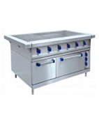Плита электрическая 6-ти конфорочная с жарочным шкафом типа ЭП-6ЖШ-К-2/1 духов.GN 2/1,конвекция, пароувлажнение (предназначена для приготовления первых, вторых и третьих блюд в наплитной посуде, а также для жарки полуфабрикатов из мяса, рыбы, овощей и выпечке мелкоштучных кулинарных изделий. Чугунные конфорки в качестве нагревательных элементов оснащены двумя ТЭНами. Площадь конфорок – 0,72 кв. м. Внизу жарочный шкаф с одним противнем и одной решеткой GN 2/1 размером 530х650мм., изготовленные из нерж. металла. Духовка имеет раздельную регулировку мощности верхнего и нижнего блоков ТЭНов. Рабочий диапазон температуры духовки 65-2700С, установленный аварийный терморегулятор предохраняет шкаф от перегрева свыше 3000С. Обладает возможностью принудительной конвекции и тпароувлажнения. Потреб. мощн. – 24,1 кВт, макс. темпер. конфорок – 4600С, макс. темп. шкафа – 270 0С, время разогрева шкафа до максимальной темпер.-20 мин., внутр. размеры шкафа – 575х715х350 мм, габаритные размеры - 1475x897x860 мм, вес- 240 кг, вся нерж.)