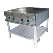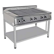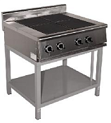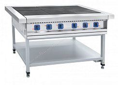 Напряжение питания 400 В. Частота тока 3/N/PE 50Гц. Номинальная потребляемая мощность 11 кВт. Рабочая температура на поверхности конфорки 400°С. Время разогрева до рабочей температуры не более 30 мин. Рабочая площадь поверхности плиты 0,36 м2. 4 чугунных конфорок 300х300 мм. Мощностью 2,5 кВт - 2 шт., 3,0 кВт -2 шт. Конфорки образуют ровную поверхность. Ступенчатое регулирование мощности конфорок (три режима работы). Открытая полка. Габаритные размеры: 850х700(740)х860(955)мм.
