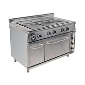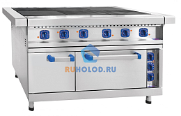 Напряжение питания 400 В. Частота тока 3/N/PE 50Гц. Номинальная потребляемая мощность 16,5 кВт. Рабочая температура на поверхности конфорки 400°С. Время разогрева до рабочей температуры не более 30 мин. Рабочая площадь поверхности плиты 0,54 м2. 6 чугунных конфорок 300х300 мм. Мощностью 2,5 кВт - 3 шт., 3,0 кВт -3 шт. Конфорки образуют ровную поверхность. Духовой шкаф с конвекцией: 575х562х348 мм, потребляемая мощность – 3 кВт. Максимальная температура духового шкафа – 300°С подходит для использования стандартных гастроемкостей GN 1/1". Противни из углеродистой стали 525х480х30 мм – 3 шт. Габаритные размеры: 1475х850х860 мм