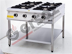 Возможность работы с LPG и NG. Магнитные краны предохранительного клапана Ударопрочная верхняя отливка Легко чистится и гигиенично Кол-во конфорок: 4 Размеры(см): 100x100x85 Вес: 66кг