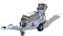 Alpha Z3 С загрузочным ковшом Deutz D2011 L03 36 кВтТехнические характеристики Максимальное давление подачи 8,5 бар Расстояние подачи* 200 м Высота подачи* 30 этажей Компрессор BMS > 5 м3/мин Двигатель Шасси/ось 1900 кг Вес установки 1900 кг Длина 4970 мм Ширина 1560 мм Высота 2250 мм Высота наполнения 450 мм Максимальная крупность зерна 16 мм Нагнетательный патрубок VT70 Объем загрузочного ковша 310 л Объем топливного бака 60 литров