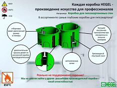 Цены по запросу с НДС. коробки HEGEL изготавливаются из материалов высокого качества не поддерживающих горение на импортном оборудовании высокой точности, в числе продукции компании HEGEL — широкий ассортимент электротехнических коробок, которые предназначены для сплошных (кирпичных и бетонных) и полых стен (сухих перегородок из гипсокартона, дсп, мдф, фанеры, мдф), а также для открытой установки IP-20,30,44,54,55,65.