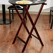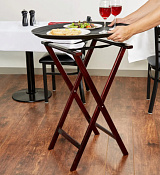 Компактная и устойчивая подставка деревянная для подноса (трейджек) – незаменимый аксессуар для каждого кафе, бара или ресторана. Трейджек предназначен для сервисного обслуживания стола и существенно облегчает работу официантов сокращая время обслуживания гостей вашего заведения. Выполнена из ясеня коричневого оттенка и декорирована кожаными ремнями.