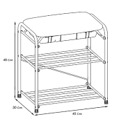 Долговечная, благодаря каркасу и полкам из стали с полимерно-порошковым покрытием. Пластиковые заглушки на ножках защитят пол от царапин. Допустимая нагрузка на полку до 8 кг, на сиденье до 120 кг. Собирается легко, благодаря пошаговой инструкции. Инструменты для сборки уже в комплекте. Обувница в картонной упаковке с ручкой - легко донести от пункта выдачи до дома. Идеальный подарок для тех, кто ценит порядок в доме.