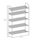 Стильная металлическая этажерка для обуви Женева 25 от российского производителя "ЗМИ" создана для компактного хранения обуви в доме, офисе и на даче. Узкая, но вместительная мебель помогает легко организовать пространство в гостинной, гардеробной, коридоре. Подставка долговечна, благодаря корпусу и полкам из стали. Четыре полочки из металла вместят до 12 пар обуви, а расстояния между ними позволят разместить как летнюю, так и зимнюю обувь. Благодаря наклону полок и бортикам ваши стены в коридоре не испачкаются, а через мелкую сетку не провалятся каблуки. Каждая полка выдерживает нагрузку до 8 кг. Верхняя корзина позволяет разместить разные мелочи, а боковые крючки - обувную ложку, зонт и ключи.