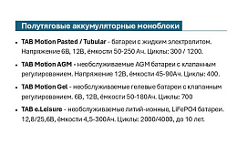Кислотно-свинцовые полутяговые моноблоки TAB.