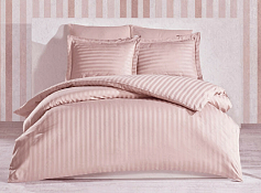 Сатин-страйп - это разновидность жаккардового сатина. В жаккардовом плетении чередуются полоски, нити которых окрашивают в разные цвета. Эта ткань более прочная и износостойкая, она предназначается для отелей, гостиниц и санаториев. Состав: 100% хлопок; 85% хлопок, 15% полиэстер; •Тип ткани: сатин-страйп 0,5, 1,5, 2, 3 см; •Мерсеризация: Jet; •Плотность: 120, 130, 140 гр./м2; •Размер: 2 спальный (2,20х2,40 см) Цвет-персиковый