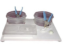 Предназначено для частичной механизации процесса формовки клейковины в шарик перед определением качества клейковины на приборах ИДК. Приспособление состоит из столика, пластины для раскатки клейковины, фишки, двух зажимов, двух кювет, а также формирующей планки с фильерой и ограничительным кольцом. Применение ПФК при формировании шарика клейковины исключает влияние человеческого фактора, из-за которого возможен разброс показателей качества клейковины. Технические характеристики: Среднее время формовки шарика клейковины, с 23 Габаритные размеры столика с кюветами, мм 230 х 190 х 65 Масса, кг не более 0,5