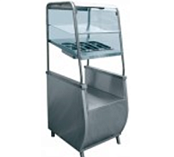 Прилавок для столовых приборов и подносов ПСПХ-70Т с хлебницей (предназначен для хранения и раздачи потребителю хлеба, столовых приборов и подносов. Лоток для приборов имеет три гастроемкости GN 1/3 для ложек, вилок и ножей, а также отдельный закрытый лоток для нарезанного хлеба. Снизу расположен закрытый отсек для дополнительных подносов или инвентаря. габ. размеры 630х700х1620, Масса 50кг)