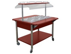 Прилавок горячих напитков передвижной (дерево) ПГН-70ДП (нейтральный стол) c гранит. столешницами (предназначен для организации буфетов и шведских столов в ресторанах и кафе с предоставлением нарезки, закусок, фруктов, демонстрационная площадь прилавка-0,49 куб.м., кол-во ламп освещения-1 шт., мощность лампы-21 Вт, масса-92 кг, габаритные размеры-1120х1040х1408 мм, подсветка).