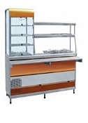 Прилавок-витрина холодильный мармитный универсальный ПВХМ-70КМУ цвет "красное золото" Прилавок-витрина холодильный мармитный универсальный ПВХМ -70КМУ цветной предназначен для кратковременного сохранения: холодных закусок в витрине, а также первых и вторых блюд в гастроёмкостях в горячем состоянии и раздачи их потребителям.