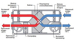 Приточно-вытяжная система вентиляции представляет собой комплекс оборудования, обеспечивающего забор воздуха с улицы, его очистку от пыли, пыльцы, подогрев и подачу в помещение. Одновременно вторая часть системы собирает отработанный воздух и неприятные запахи, и удаляет их наружу.