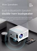Быстрое и стабильное соединение Wi-Fi 2,4G/5G и Bluetooth. Благодаря новейшему соединению Wi-Fi этот проектор позволяет синхронизировать экран смартфона с помощью Wi-Fi 2,4G и 5G, а сверхбыстрый Wi-Fi 5G обеспечивает более плавную и свободную потоковую передачу онлайн-видео. . Встроенный чип Bluetooth 5.0, который упрощает беспроводное подключение вашего устройства Bluetooth, например наушников, динамиков и других аудиоустройств.