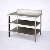 Производственный стол из нержавеющей стали с бортом и двумя нижними полками