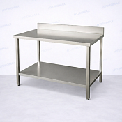 Производственный стол из нержавеющей стали с бортом и нижней полкой