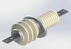 Проходные изоляторы ИПУ-10/630-7,5 УХЛ1 имеют далеко выступающие металлические ребра, которые защищают от дождя расположенные под ними части изолятора.