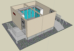 ОПУ-8 представляет собой одно здание размером 13650/2350/2650 мм, состыкованное из двух блоков ОПУ-7 с лестничными площадками по торцам.