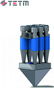 Компания «ТЭТМ» изготавливает ПЫЛЕУЛАВЛИВАЮЩЕЕ ОБОРУДОВАНИЕ Циклон Циклон — это устройство для отделения твердых частиц от газа; центробежные пылеуловители, конструктивные элементы которых обеспечивают вращательное или поступательное движение газового потока. Принципиально циклон работает по следующей схеме (см. рис.). Запыленный газ поступает в образующую кольцевое пространство аппарата цилиндрическую часть, где движется по спирали с возрас-тающей скоростью от периферии к центру, спускается по наружной спирали, затем поднимается по внутренней спирали, выходит через выхлопную трубу. Под действием центробежной силы частицы пыли отбрасываются к стенке циклона и вместе с частью газа попадают в бункер. Часть освободившегося от пыли газа возвращается из бункера в циклон через центр пыле отводящего отверстия, давая начало внутреннему вихрю. Циклоны надёжны, высокопроизводительны, могут использоваться для очистки агрессивных и высокотемпературных газов и газовых смесей. Степень очистки смеси от пыли в циклоне зависит от геометрических размеров и формы аппарата, свойств пыли, скорости пылевоздушной смеси. Улавливание частиц в циклоне улучшается с повышением скорости потока, а также с уменьшением его диаметра. Положительно сказывается на работе циклона и уменьшение угла конуса, что увеличивает число оборотов, совершаемых газовым потоком в циклоне. Форма оплата: Любая