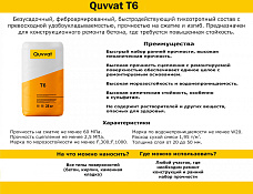 Quvvat т5 125 Безусадочный, быстротвердеющий тиксотропный состав для конструкционного ремонта бетона и железобетона Безусадочный, быстротвердеющий тиксотропный состав для конструкционного ремонта бетона и железобетона Quvvat т5 125 Материал соответствует требованиям ГОСТ Р 56378-2015, Класс R4. Описание Quvvat т5 125 - сухая смесь серого цвета. Состав: цемент, минеральный заполнитель, армирующие волокна и модифицирующие добавки. При смешивании с необходимым количеством воды образуется высокопрочная, безусадочная, тиксотропная растворная смесь с высокой степенью адгезии к арматуре и ремонтируемому основанию. Особенности Легко наносится ручным и механизированным способом. Быстрый набор ранней прочности, высокая конечная прочность. Высокая прочность сцепления с ремонтируемой поверхностью обеспечивает единое целое с ремонтируемым основанием. Не требует использования специальных связующих покрытий. Может твердеть в сырых закрытых пространствах при быстром наборе прочности. Высокая морозостойкость и водонепроницаемость. Высокая стойкость к воздействию твердых, жидких и газообразных агрессивных сред, морской и пресной воде, сточных и канализационных вод. Не содержит растворителей и других веществ, опасных для здоровья. Допускается контакт с питьевой водой. Область применения Ремонт поврежденных и разрушенных элементов бетонных и железобетонных конструкций (класс бетона не ниже В25), в том числе: ремонт гидротехнических сооружений и сооружений водного транспорта; ремонт причалов в портах; проведения ремонтных работ в зоне переменного уровня воды; ремонт элементов несущих конструкций, пролетных строений, опор мостов и т.п., подверженных циклическим нагрузкам; ремонт конструкций подверженных воздействию морской воды, сточных вод, агрессивных сред, минеральных масел и многократному чередованию циклов замораживания-оттаивания.