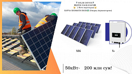 ҚУЁШ ПАНЕЛЛАРИ 50 квт Онгрид Акумляторсиз