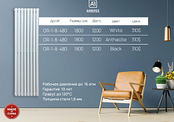 Радиатор OR-1-8-480 — это воплощение элегантности и функциональности. Высота в 1800 мм делает его идеальным для обогрева больших помещений, а мощность в 1200 Вт обеспечивает равномерное распределение тепла. Рабочее давление до 16 атмосфер гарантирует надежность и долговечность изделия. Радиатор выдерживает температуру до 120°C, что делает его идеальным выбором для суровых зимних условий._x000D_