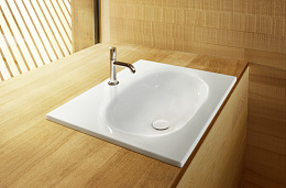 Овальный дизайн ванны BetteComodo проявляется также в соответствующей раковине. Он обеспечивает сквозное использование материала и единый стиль в ванной комнате. Полностью симметричная форма раковины хорошо сочетается со многими другими овальными ваннами.