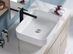 Раковина OSSO-469 выполнена в современном минималистичном дизайне и станет стильным дополнением ванной комнаты. Модель компактна и занимает минимум пространства, при этом функциональна и удобна в использовании. Изготовлена из качественного сантехнического фарфора белоснежного цвета. Идеально гладкое покрытие чаши не задерживает грязь и мыльный налет, что упрощает уход и поддерживает гигиеничность сантехники. Раковина рассчитана на накладной монтаж поверх тумбы или столешницы.