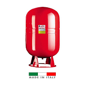 Красный расширительный мембранный бак ELBI ER-CE для компенсации изменения объема теплоносителя в системе отопления.