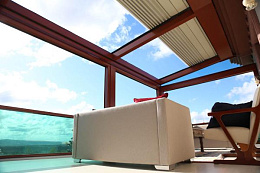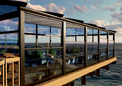 Автоматическое панорамное остекление гильотинного типа - это одна из самых популярных моторизованных стеклянных ограждений. Эта уникальная система дает возможность стильно и без лишних усилий остеклять проемы по периметру здания и контролировать прохождения свежего воздуха. Она представляет собой систему, в которой стеклянные панели передвигаются в вертикальной плоскости проема при помощи встроенного электропривода. Ударопрочное закалённое стекло препятствует пробиванию отверстия и выдерживает удары различной силы, предотвращая несанкционированное проникновение.