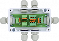Разветвитель РК-3 относится к классу пассивных разветвителей интерфейса RS-422/485 и питания и представляет собой присоединительно-согласующее устройство приемников и передатчиков сигналов интерфейса RS-422/485. Корпус изготовлен из термостойкого поликарбоната. Герметичные кабельные вводы позволяют использовать кабели диаметром от 2 до 8 мм.