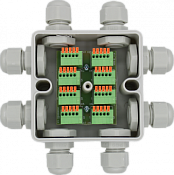 Разветвитель ПР-8 относится к классу пассивных разветвителей интерфейса RS-422/485 и представляет собой присоединительно-согласующее устройство приемников и передатчиков сигналов интерфейса RS422/485. Корпус разветвителей RS 485 ПР 8 изготовлен из термостойкого поликарбоната. Герметичные кабельные вводы позволяют использовать кабели диаметром от 2 до 8 мм.