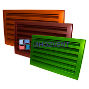 Решетка вентиляционная наружная РВН с горизонтально неподвижно закрепленных жалюзи используются для подачи и удаления воздуха в приточно вытяжной вентиляции, и системах кондиционирования воздуха, предназначены для монтажа в возду- ховоды или на стены (строительные проемы) помещений различных назначений с одновременным предотвращением проникновения через решетку атмосферных осадков. Решетки представляют собой раму прямоугольной формы с горизонтально установленными в нее неподвижными жалюзи, которые препятствуют проникновению атмосферных осадков с улицы. В случае необходимости с целью предотвращения проникновения через решетку листьев, крупных насекомых, птиц рекомендуется использовать дополнительно установленную с внутренней стороны решетки оцинкованную сетку. Решетки изготовлены из экструдированного алюминиевого профиля. В качестве защитно декоративного покрытия используется порошковая полимерная краска. Основной цвет покрытия – белый. Возможно окрашивание в другой цвет по каталогу цветов RAL. Решетки могут эксплуатироваться при температурах рабочей среды от -60 °С до +45 °С. Окружающая среда и воздух не должны содержать агрессивных газов и паров, разрушающих материалы и лакокрасочные покрытия изделия. Решетки изготавливаются в климатических исполнениях для эксплуатации в районах с умеренным У и УХЛ климатом и категории размещения 1 и 2 согласно ГОСТ 15150.