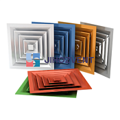 Решетка вентиляционная потолочная 4РВП с 4-х сторонним распределением воздуха и съемной центральной частью используются для подачи и удаления воздуха в приточно-вытяжной вентиляции, и системах кондиционирования воздуха, предназначены для монтажа в подвесной потолок типа «Армстронг» и потолки других типов в помещениях различного назначения. Решетки представляют собой раму прямоугольной формы с установленной в нее съемной середины (по запросу середину можно сделать не съемную) в виде жестко закрепленных между собой внутренних рамок для создания «настилающего» потока воздуха, направленного в четыре стороны. Внутренняя часть решетки для удобства монтажа и обслуживания может выниматься и устанавливаться на уже смонтированную внешнюю раму. Решетки изготовлены из экструдированного алюминиевого профиля. В качестве защитно-декоративного покрытия используется порошковая полимерная краска. Основной цвет покрытия – белый. Возможно окрашивание в другой цвет по каталогу цветов RAL. При необходимости регулировки объема воздушного потока (регулировки живого сечения) решетки комплектуются клапаном расхода воздуха КРВ. Решетки могут эксплуатироваться при температурах рабочей среды от -40 °С до +45 °С. Окружающая среда и воздух не должны содержать агрессивных газов и паров, разрушающих материалы и лакокрасочные покрытия изделия. Решетки изготавливаются в климатических исполнениях для эксплуатации в районах с умеренным У и УХЛ климатом и категории размещения 3 и 4 согласно ГОСТ 15150.