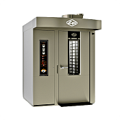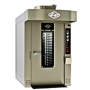 Интенсивная циркуляция потоков горячего воздуха внутри печи и вращение тележки с противнями позволяет равномерно распределять температуру на выпечку, обеспечивая равномерное и качественное пропекание.