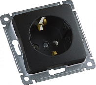 Розетка скрытой установки одноместная заземляющий контакт со шторками чёрный- РС 16-312-08
