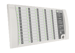 Раздельное отображение на 60 двухцветных индикаторах состояний контролируемых разделов: «Взят», «Взятие», «Снят», «Тревога», «Нападение», «Невзятие», «Пожар», «Внимание», «Неисправность», «Нарушение технолог. ШС», «Норма технолог. ШС», «Протечка», «Повышение/Понижение температуры», «Повышение/Понижение уровня», «Дверь Взломана», «Дверь Заблокирована», «Дверь Открыта/закрыта», «Доступ закрыт/открыт/в норме»