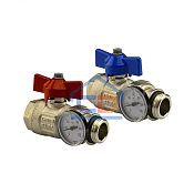 Шаровой кран прямой для коллектора с термометром 1" (дюйм)