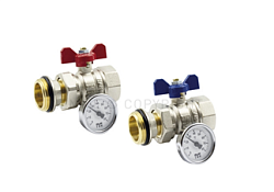 Шаровой кран с полусгоном с термометром "1" комплект (красный+синий)